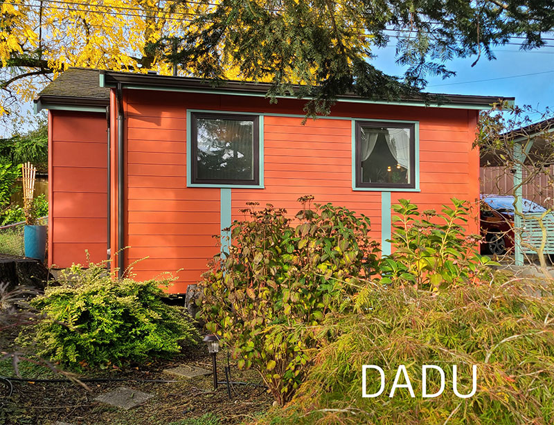 Flexibility: Over time, we have the choice to live in either the house or the DADU, whichever fits our needs at that moment. In both the house and DADU, there is blocking behind the walls for grab bars and the showers are either zero threshold or low threshold. In the house, an additional washer dryer space is on the main level if that is needed in the future. Although the main house has stairs, they are set up to be able to install a chair lift in the future. These dwellings are on the small side but highly functional, making them easier to maintain and live in over time.